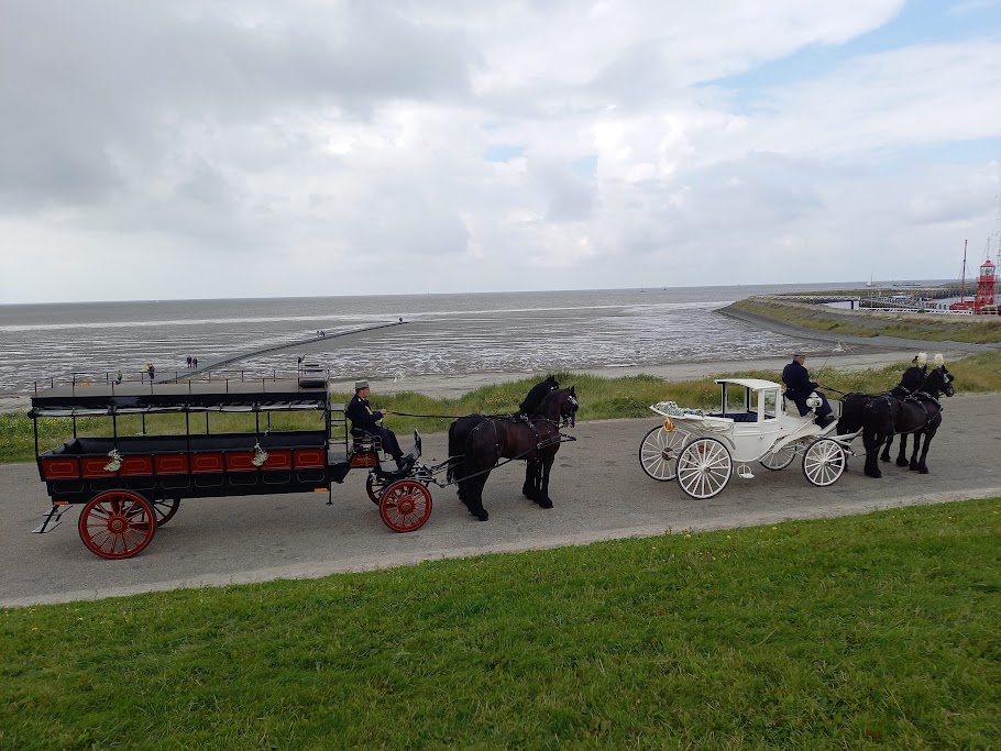 Minimaal twee Friesche paarden staan voor dit rijtuig ingespannen en brengen u veilig en comfortabel naar uw locatie!